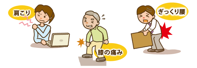 現代人の身体の悩み(腰、腰、膝等の痛みや不調)に答えることが出来ます。